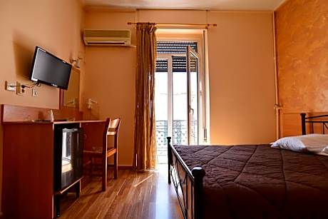 Simply furnished room is soundproof and air conditioned. Includes a TV, mini fridge and bathroom with hairdryer and toiletries.