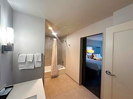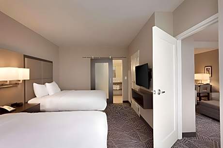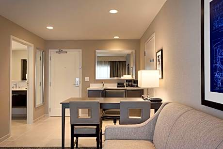 Embassy Suites by Hilton Kansas City Olathe beschikt over een fitnesscentrum, een terras, een restaurant en een bar in Olathe. Dit 4-sterrenhotel biedt een 24-uursreceptie, een geldautomaat en gratis WiFi. Het hotel beschikt over een binnenzwembad, een hot tub en roomservice. Elke kamer van het hotel is voorzien van een bureau. Alle kamers zijn voorzien van airconditioning en een flatscreen-tv. Sommige accommodaties van Embassy Suites by Hilton Kansas City Olathe hebben een kluisje. Alle kamers zijn voorzien van een koelkast. Gasten van de accommodatie kunnen genieten van een ontbijtbuffet. Een businesscentrum en automaten met snacks en drankjes zijn beschikbaar bij Embassy Suites by Hilton Kansas City Olathe. Het National World War I Museum at Liberty Memorial ligt op 29 km van het hotel en het Kansas City Convention Center ligt ook op 29 km afstand. De internationale luchthaven van Kansas City ligt op 47 km afstand.