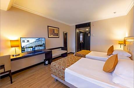 Eresin Hotels Topkapi offers top-notch services and amenities, ensuring guests experience utmost comfort.Maintain seamless communication using the complimentary Wi-Fi at hotel.Effortlessly arrange transportation to and from the airport using the hotel's airport transfer services.Car hire offerings at the hotel enhance the ease of discovering İstanbul. Guests can avail parking facilities at the hotel. During your stay at this fantastic hotel, the attentive front desk personnel can provide you with a range of amenities such as concierge service, express check-in or check-out, luggage storage and safety deposit boxes.At the hotel, utilize the on-site dry cleaning service and laundry service to maintain your beloved travel attire fresh, allowing you to bring fewer clothes. Craving relaxation? Make the most of your stay at the Eresin Hotels Topkapi with convenient amenities like 24-hour room service, room service and daily housekeeping at your disposal.For visitors wishing to smoke, designated smoking zones can be found. At Eresin Hotels Topkapi, every guestroom is provided with convenient amenities and fittings to ensure a comfortable stay. Enhance your experience at hotel with the knowledge that certain rooms are equipped with linen service, blackout curtains and air conditioning for your convenience. Certain rooms boast in-room amusement features such as television and cable TV, offering guests an enjoyable stay. In select rooms within the hotel, a coffee or tea maker, bottled water and mini bar is available to cater to your requirements when desired. In the hotel, certain guest bathrooms come equipped with essential bathroom amenities, such as a hair dryer, toiletries and bathrobes, ensuring a comfortable stay for guests. Begin your day with a scrumptious on-site breakfast available each morning at Eresin Hotels Topkapi.At the hotel, an assortment of easily accessible and delicious meal choices are available to satisfy your appetite whenever it strikes.Enjoy an entertaining evening with your fellow travelers at the hotel's bar. During your stay at hotel, an array of engaging activities and amenities guarantees a delightful experience.Conclude your holiday perfectly with a visit to massage, hot tub, salon, steam room, spa and sauna on your final days. Be sure to drop by the pool at hotel at least once during your stay.Discover the fitness amenities at hotel to maintain your health and strength during your getaway.