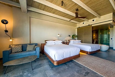 Junior Suite Two Double Beds is 635 square feet and includes 2 double beds 131-150 width.