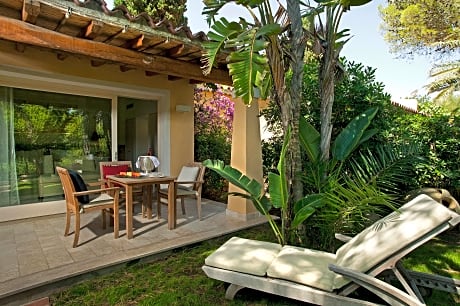 Named the world's leading holiday venue in 1995, this oasis of peace and relaxation remains a top choice. Its microclimate on the Cagliari coastline and 25 hectares of lush tropical gardens, shaded by tall pines and protected from northerly winds by the mountains, create a tranquil escape. Located just a half-hour drive from Cagliari Airport, this section of the resort offers 39 luxury bungalows and 24 suites, each furnished in Sardinian style, reflecting the harmonious colours of the sky and sea. The secluded bungalows offer ultimate privacy. All air-conditioned rooms feature hot tubs, TVs, minibars, and everything needed for a comfortable Sardinian holiday.