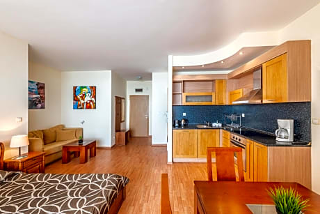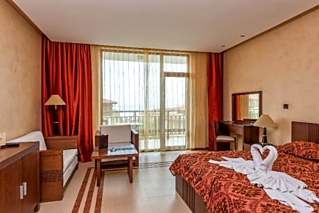 The south-facing Garden of Eden Complex is located directly at the beach in Sveti Vlas It consists of a 5* part with Double Rooms and Suites, and 4* Apartments. It offers modern accommodations mostly with sea views and several restaurants and bars. Located close by to Sunny Beach, the complex offers 7 outdoor pools with children’s sections and 4 pool bars, including a pool patisserie. The rooftop Vista Bar has beautiful panoramic views. Free Wi-Fi is available in most bars. There are 3 different restaurants that serve international cuisine. Guests can benefit from additional services such as dry cleaning, a supermarket, organized excursions and car rental.