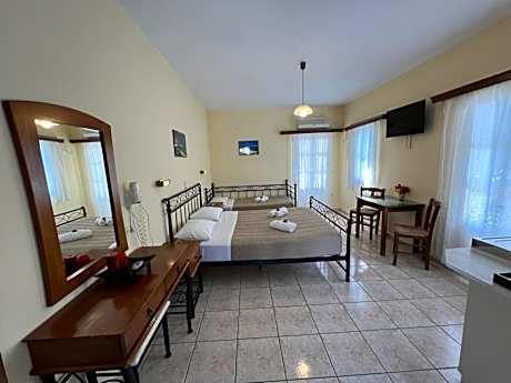Air-conditioned studio with free Wi-Fi and a furnished patio or balcony with Aegean Sea and garden views. Features: -kitchenette with cooking rings, fridge and dining area. -seating area with TV -private bathroom with hairdryer - safe