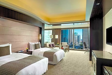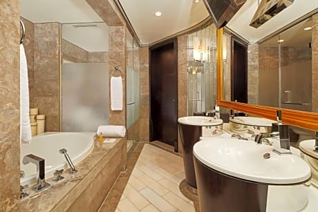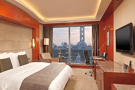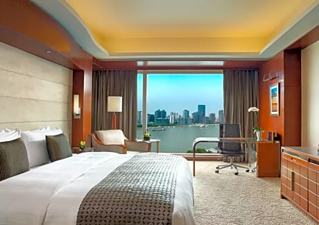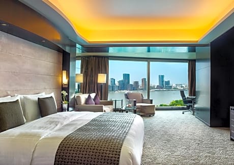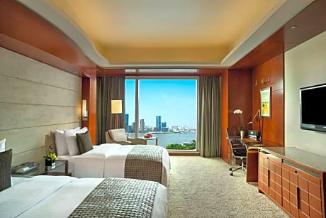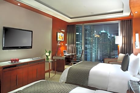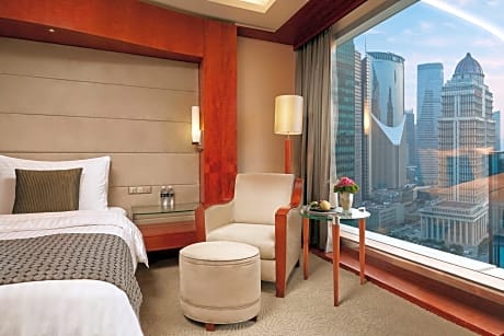 This luxurious Grand Kempinski Hotel Shanghai in Lujiazui Financial Area features a penthouse indoor pool, 6 dining options and a pampering spa. Beautiful rooms feature views of Pudong financial district and the Huangpu River. Surrounded by several popular attractions including Oriental Pearl Tower, Jin Mao Tower and Binjiang Park, Grand Kempinski Hotel Shanghai is a convenient 5-minute walk from Lujiazui Metro Station (Line 2). It is a 15-minute drive from Shanghai New International Expo Center. Hongqiao International Airport is 11 mi away, while Pudong International Airport is 25 mi away. Shanghai Disneyland can be reached in 42 minutes by car. Offering either city views or Bund views, the spacious air-conditioned guestrooms at Grand Kempinski Hotel Shanghai feature stylish Art-Deco design and a large marble bathroom. Each room offers a flat-screen TV, iPod dock, 2 bathrobes and mini-bar. The Yhi Spa offers a wide variety of massage treatments, as well as sauna rooms and spa baths. Guests can also exercise at the well-equipped fitness center or arrange day trips at the concierge. Buffet, Spanish, Chinese and Italian cuisines can be enjoyed at the hotel's on-site restaurants. Other dining options include Havana bar and Lobby bar.