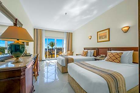 This resort features a free form 2 outdoor pools and a children's swimming pool with panoramic views of the Red Sea. Located on Sharks Bay beach, it offers bright accommodations and a private beach with loungers and umbrellas. Soho Square is a 5-minute walk away. Grand Oasis Resort’s rooms are spacious and fitted with full-length windows, all of which open onto a private balcony. Each air-conditioned room has a work desk and TV with multilingual cable channels. At the Grand Oasis, guests can relax in the large pool, enjoy shisha or unwind with a cocktail from the poolside bar or the lobby bar. For a vigorous workout, the hotel provides a well-equipped gym, beach volleyball and sports courts. Grand Oasis Resort is 5.6 mi from popular Naama Bay, offering plenty of restaurants and shops. Sharm el Sheikh Airport is 5.5 mi away.