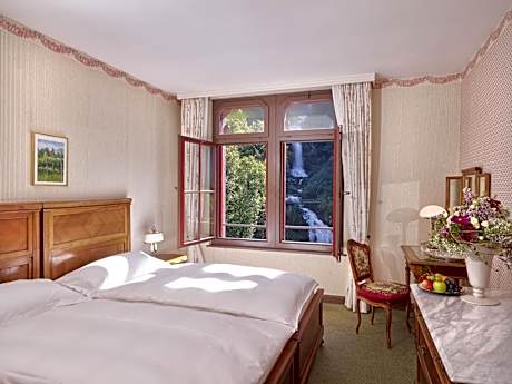 The Grandhotel Giessbach is a historic house from 1874 and enjoys a secluded position on a hill above Lake Brienz amid a 22-hectare park. It offers views over Lake Brienz and the Giessbach Waterfall,an outdoor pool, 2 restaurants, one of which features a summer terrace. Free WiFi is available in all areas. It is located at the foot of the Giessbach Waterfall and is directly connected to the Giessbach ship pier by Europe's oldest funicular. All guest rooms in the Grandhotel Giessbach feature carefully restored original furniture with 19-century charm. The two restaurant serve modern and creative cuisine. Half board includes a 4-course dinner.