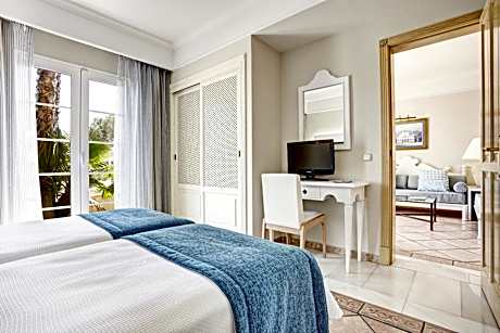 The hotel is located 656 feet from the wonderful Son Xoriguer beach. and offers fully furnished and equipped apartments. The hotel’s facilities include a swimming pool with children’s splash pool, indoor pool, sauna, fitness room and massages. Aa varied breakfast buffet is available each morning, while the restaurant offers a hot and cold buffet and show cooking at dinner time. You can relax in the lounge bar and the pool bar with snack service. Children up to 16 years old can access the indoor pool between 10:00 am and 2:00 pm, and always in the company of an adult. When booking more than 5 rooms, different policies and additional supplements may apply.