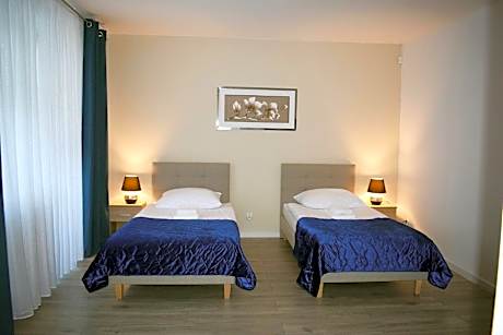This triple room has a electric kettle and tea/coffee maker. The room is located on the lower ground floor.