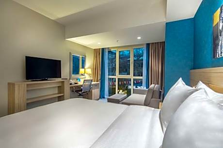 Experience an abundance of unparalleled facilities and features at Hampton by Hilton Kahramanmaras.Maintain seamless communication using the complimentary Wi-Fi at hotel.Guests can avail parking facilities at the hotel.During your stay at this fantastic hotel, the attentive front desk personnel can provide you with a range of amenities such as luggage storage and safety deposit boxes.For extended visits or whenever required, the laundry service ensures your preferred travel garments remain fresh and accessible. Begin your day carefree at Hampton by Hilton Kahramanmaras, as complimentary breakfast is offered for your convenience. During your stay at hotel, an array of engaging activities and amenities guarantees a delightful experience. Discover the fitness amenities at hotel to maintain your health and strength during your getaway.