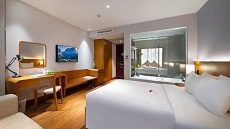 Experience an abundance of unparalleled facilities and features at Harmony Saigon Hotel & Spa. Maintain seamless communication using the complimentary Wi-Fi at hotel.Effortlessly arrange transportation to and from the airport using the hotel's airport transfer services. Discovering Ho Chi Minh City becomes even more accessible through the taxi and car hire amenities provided at the hotel.For visitors traveling by automobile, complimentary parking is available.During your stay at this fantastic hotel, the attentive front desk personnel can provide you with a range of amenities such as concierge service, express check-in or check-out, luggage storage and safety deposit boxes. In search of city's top entertainment, seek assistance at the hotel's ticket service and tours for reservations. At the hotel, utilize the on-site dry cleaning service and laundry service to maintain your beloved travel attire fresh, allowing you to bring fewer clothes. Craving relaxation? Make the most of your stay at the Harmony Saigon Hotel & Spa with convenient amenities like 24-hour room service, room service and daily housekeeping at your disposal. Kindly note that smoking is prohibited in the hotel to ensure fresher air for all visitors. For visitors wishing to smoke, designated smoking zones can be found. At Harmony Saigon Hotel & Spa, every guestroom is provided with convenient amenities and fittings to ensure a comfortable stay. Enhance your experience at hotel with the knowledge that certain rooms are equipped with linen service, blackout curtains and air conditioning for your convenience.A few accommodations within Harmony Saigon Hotel & Spa offer unique design elements such as a balcony or terrace.Certain rooms boast in-room amusement features such as television and cable TV, offering guests an enjoyable stay. In select rooms within the hotel, a refrigerator, a coffee or tea maker, bottled water, instant coffee, instant tea and mini bar is available to cater to your requirements when desired. In the hotel, certain guest bathrooms come equipped with essential bathroom amenities, such as a hair dryer, toiletries and bathrobes, ensuring a comfortable stay for guests. Be sure to stop by the elegant executive lounge where you can experience the lavish amenities and ambiance. Begin your day carefree at Harmony Saigon Hotel & Spa, as complimentary breakfast is offered for your convenience. Begin your day feeling refreshed and invigorated as you enjoy a delightful cup of quality coffee available at the cafe situated within the hotel.At the hotel, an assortment of easily accessible and delicious meal choices are available to satisfy your appetite whenever it strikes. Enjoy an entertaining evening with your fellow travelers at the hotel's bar. During your stay at hotel, an array of engaging activities and amenities guarantees a delightful experience.Conclude your holiday perfectly with a visit to massage, hot tub, steam room, spa and sauna on your final days.Be sure to drop by the pool at hotel at least once during your stay. At Harmony Saigon Hotel & Spa, utmost care is taken to ensure guests' comfort. Relish your preferred beverage in your swimwear by the hotel's poolside bar. Discover the fitness amenities at hotel to maintain your health and strength during your getaway.