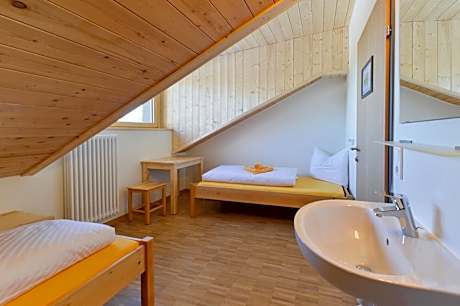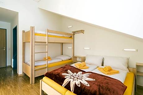 This quadruple room has a shared bathroom, a wardrobe and garden views.