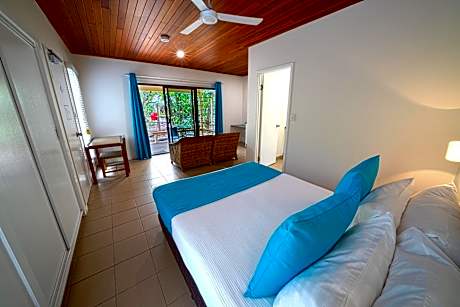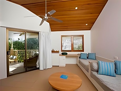 Offers filtered reef and water views through a canopy of beachside trees and shrubs.