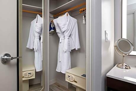 Dit hotel in Galveston ligt aan de Golf van Mexico en beschikt over een buitenzwembad omgeven door tropische landschappen, een restaurant aan het zwembad en kamers met een flatscreen-tv. Luchthaven Scholes ligt op 10 minuten afstand. Elke kamer in het Hilton Galveston Island Resort is voorzien van een koffiezetapparaat, satelliet-tv en een compacte koelkast. Luxe voorzieningen zijn onder andere een badjas en slippers. Gasten kunnen 's avonds roomservice bestellen en elke kamer heeft een zithoek. Sommige kamers hebben een balkon met uitzicht op de oceaan. Galveston Island Hilton Resort beschikt over een fitnesscentrum en een businesscentrum met gratis wifi. Er zijn een 24-uursreceptie, conciërgediensten en een cadeauwinkel aanwezig. Restaurant Palm Court is de hele dag geopend en serveert Caribisch geïnspireerde en Amerikaanse gerechten. Gasten kunnen genieten van cocktails aan het zwembad en een lichte maaltijd in Coconuts Bar and Grill of binnen in de lobbybar. Het Galveston Island Convention Center bevindt zich naast het Hilton Island Galveston Resort.