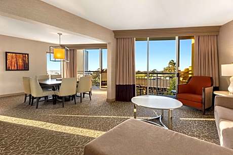 Dit hotel in Californië ligt aan de kliffen van La Jolla en biedt luxe faciliteiten met uitzicht op de Torrey Pines Golf Course en de Stille Oceaan, op slechts enkele minuten van Central San Diego, Encinitas en Del Mar. Elke kamer van het Hilton La Jolla Torrey Pines is voorzien van airconditioning en een 55-inch kabel-tv met pay-per-viewkanalen. Elke kamer beschikt over een bureau en een eigen badkamer met een föhn. Geniet tijdens het ontbijt, de lunch en het diner van smaken uit Noord- en Zuid-Amerika en de Pacific Rim in de Torreyana Bar & Grille van het hotel. Gasten van het Hilton La Jolla Torrey Pines kunnen fietsen huren om de omgeving te verkennen of een schilderachtige wandeling maken in het aangrenzende Torrey Pines State Reserve. Het Hilton La Jolla Torrey Pines ligt op 24 km van de internationale luchthaven van San Diego. De Del Mar Racetrack, La Jolla Shores en het Birch Aquarium liggen vlakbij.
