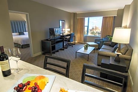 Dit hotel in Milwaukee is via een overdekte skywalk verbonden met het congrescentrum Baird Center. Het hotel biedt meerdere restaurants, een bar, een full-service Starbucks en een businesscentrum. Hilton Milwaukee beschikt over kabeltelevisie en een koffiezetapparaat in elke kamer. Gasten kunnen trainen in het fitnesscentrum van het hotel. De receptie is 24 uur per dag geopend. De Milwaukee ChopHouse in het Milwaukee Hilton serveert elke avond steaks en visgerechten voor het diner. De Miller Time Pub & Grill is dagelijks geopend voor lunch en diner. De Monarch Lounge serveert elke avond drankjes en hapjes.