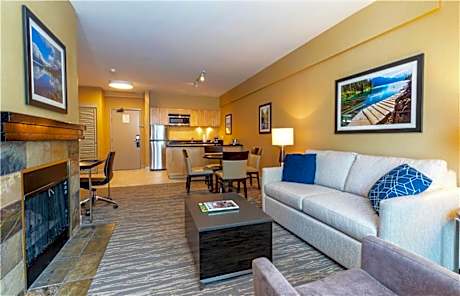 Featuring an outdoor swimming pool, full-service spa and on-site restaurant, this resort is located in the heart of Whistler Village. Each guest room includes a seating area and free WiFi. A 55" flat-screen cable TV is offered in each guest room at Hilton Whistler Resort & Spa. A work desk and coffee- and tea-making facilities are provided. An private bathroom features bathrobes and slippers. The Whistler Hilton features on-site ski and bike rental services as well as a modern fitness center. Guests can also enjoy on-site dining at the Cinnamon Bear. The Blackcomb Excalibur Gondola is just 6 minutes' walk away. The Whistler Conference Center is 656 feet away.