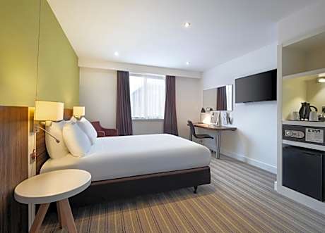Holiday Inn Huntingdon Racecourse ligt op het schilderachtige terrein van Huntingdon Racecourse, op 30 minuten rijden van Cambridge en Peterborough. Het biedt moderne kamers met airconditioning. Het hotel beschikt over een restaurant, een bar en 24-uurs roomservice, gratis parkeergelegenheid en overal wifi. De moderne kamers van dit Holiday Inn hebben allemaal een eigen badkamer met douche, een bureau, een telefoon, een flatscreen-tv en koffie- en theefaciliteiten. Gasten kunnen ook gebruikmaken van de mini-fitnessruimte van het hotel. Alle kamers zijn uitgerust met een haardroger, strijkijzer en strijkplank. U kunt elke ochtend genieten van een ruime keuze aan ontbijtopties van het buffet, of iets meenemen uit het To Go Café. Het hotel hanteert een open lobbyconcept, waar u in het restaurant kunt eten of kunt ontspannen met een drankje van de bar. Het hotel heeft een tuin met terras en biedt een snelle in- en uitcheckservice. Het ligt op slechts 2 minuten van de A1 en op 7 minuten van het treinstation van Huntingdon.