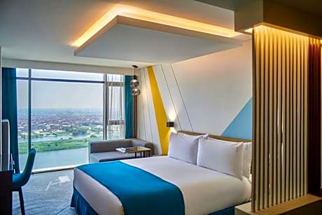Located in Cairo, 6.3 miles from Mosque of Ibn Tulun, Holiday Inn & Suites - Cairo Maadi by IHG has accommodations with an outdoor swimming pool, private parking, a fitness center and a shared lounge. This 5-star hotel offers room service and an ATM. The hotel has a terrace and city views, and guests can enjoy a meal at the restaurant or a drink at the bar. All rooms in the hotel are equipped with air conditioning, a seating area, a flat-screen TV with satellite channels, a kitchen, a dining area, a safety deposit box and a private bathroom with a shower, free toiletries and a hairdryer. All guest rooms will provide guests with a desk and an electric tea pot. A buffet, continental or American breakfast is served at the property. You can play pool and darts at Holiday Inn & Suites - Cairo Maadi by IHG, and car rental is available. Staff speak Arabic, English and French at the 24-hour front desk. Tahrir Square is 6.5 miles from the accommodation, while The Egyptian Museum is 6.8 miles from the property. Cairo International Airport is 17 miles away.