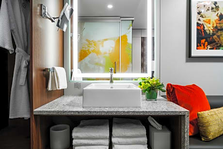 Offering an outdoor pool and bar with a retractable roof and a fitness center, Hotel Arts is located in Calgary city center. Free WiFi access is available throughout the property. Calgary Stampede is just 0.6 mi away. All rooms offer a cable TV, in-room safe, and Keurig coffee machine. Private bathrooms also come with Skoah bath amenities and a bath. A workstation with power outlets and USB ports, and an iron and ironing board are provided. Select rooms offer a city or pool view. At Calgary Hotel Arts you will find the on-site restaurant Yellow Door Bistro and Freestyle Social Club. Other facilities offered include spa services, luggage storage, and complimentary bike rentals. Underground self parking and valet parking is available. Calgary Zoo and various shops are within 1.9 mi from this hotel. CORE Shopping Center is 3 minutes’ drive away.