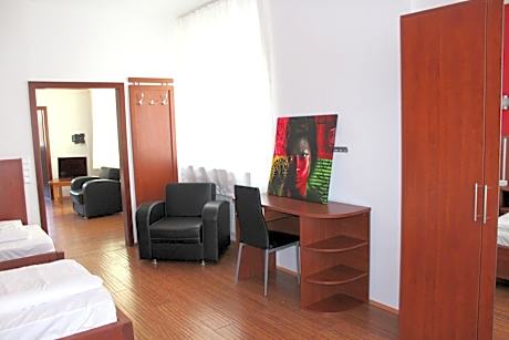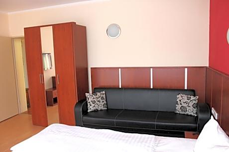 Homelike room featuring satellite TV and a sofa bed. Toiletries and a hairdryer are provided in the private bathroom.