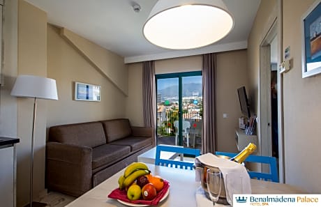 Located just 820 feet from Benalmadena Beach, this hotel offers accommodations with views of the outdoor pool, mountains or sea. Free facilities include a well-equipped spa, heated indoor pool and gym. The spacious apartments and studios at Hotel Benalmadena Palace have free Wi-Fi and a lounge area with a sofa, which leads out onto a furnished terrace. They come with a kitchenette and dining area. There is a satellite TV, air conditioning and heating, and a private bathroom. Benalmadena Palace offers an entertainment program for adults and there is a children’s mini club. The hotel also has a cinema, games room and internet area. The hotel has a barbecue area, restaurant and snack bar. Guests can also enjoy drinks in the pub with live music and a happy hour every night. Málaga International Airport is 12 mi from the hotel. The Torrequebrada Golf Course is next to Palace Hotel Benalmadena. The hotel offers a minibus service to the beach and La Paloma Park.