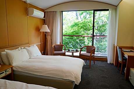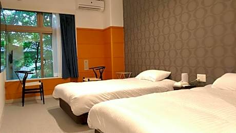 The spacious twin room offers air conditioning, soundproof walls, a terrace with garden views as well as a shared bathroom boasting a bidet. The unit has 2 beds.