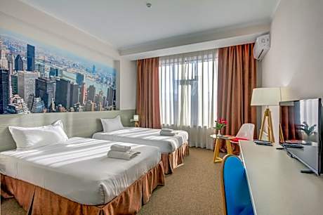 Hotel Bridges Bishkek offers top-notch services and amenities, ensuring guests experience utmost comfort. Share your photos and respond to emails at your convenience, thanks to the free Wi-Fi internet access offered by hotel. Should you require transportation to or from the airport, hotel is able to organize it prior to your arrival date.Visitors can take advantage of the accessible parking options directly at the hotel. Traveling with minimal luggage is achievable at Hotel Bridges Bishkek due to the hotel's laundry service ensuring your garments stay fresh.Room amenities feature daily housekeeping, allowing you to unwind and make the most of your visit. Each accommodation at Hotel Bridges Bishkek is thoughtfully created and adorned to provide visitors with a comfortable, home-like atmosphere.In select rooms of the hotel, guests can enjoy the advantage of having air conditioning available for their convenience.Rest assured, in a few chosen rooms, the presence of a refrigerator can be found. Begin your holiday on a high note. At Hotel Bridges Bishkek, your mornings are greeted with a delightful, free breakfast.