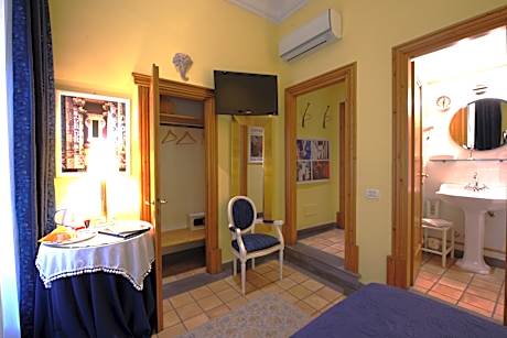 This larger and elegantly decorated room features attention to details such as mirrors, paintings and fresh flowers. It features free Wi-Fi, air conditioning, and an private bathroom.