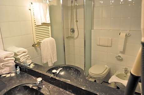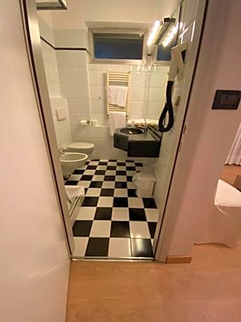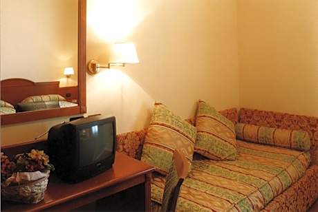 Air-conditioned room with free Wi-Fi, a satellite LCD TV with Mediaset Premium channels, and a private bathroom with hairdryer.