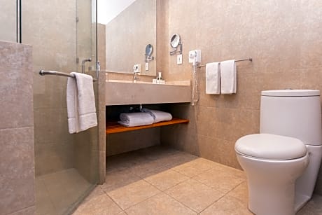 This double room is decorated in warm colors and offers air conditioning, cable TV, room service and an equipped bathroom with magnifying mirror, hair dryer and shower.