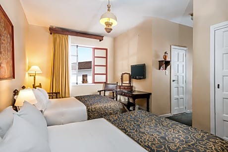A room with Colonial-style décor and Queen size beds. Some double rooms may offer views of the city's clay tile roofs. Please note children under 10 years old can stay for free using existing beds.