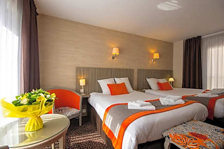 This hotel is located just a 5-minute walk from Troyes city center, a few steps from the train station. The Troyes cultural center, Espace Argence, is 1312 feet away. The hotel offers soundproofed rooms with free Wi-Fi access and private bathrooms. The Hotel de la Gare Troyes Center serves a daily breakfast, which can be enjoyed in the breakfast room, on the interior courtyard, or in the comfort of the guest rooms. The Hotel has a lounge with a fireplace and there is public parking just opposite the hotel. The Troyes Exhibition Park is a 5-minute drive away.