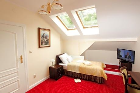Located in Sójki, 26 miles from a.r.t. Gallery, Hotel Dwór Sójki has accommodations with a garden, free private parking, a shared lounge and a terrace. Each room at the 3-star hotel has garden views, and guests can enjoy access to a restaurant and to a bar. The property provides a 24-hour front desk, airport transportation, room service and free WiFi throughout the property. At the hotel, the rooms have a closet. The rooms are equipped with a private bathroom with a shower, free toiletries and a hairdryer. At Hotel Dwór Sójki all rooms come with a desk and a flat-screen TV. Guests at the accommodation will be able to enjoy activities in and around Sójki, like cycling. Lodz Wladyslaw Reymont Airport is 53 miles from the property.