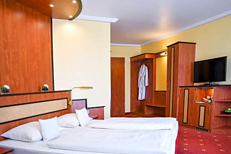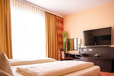 Located in the Baroque city of Fulda, this 4-star, Mediterranean-style, hotel features great views over the city, and is just 656 feet away from the main railway station. The Hotel Esperanto Kongress- und Kulturzentrum offers tastefully furnished rooms equipped with all of the modern amenities you need. A buffet breakfast, free WIFI and use of the Sauna- und Solelandschaft Beauty & Spa Esperanto are included in the room rate. Diners can enjoy international cuisine in the Esperanto’s El Jardin restaurant, which also features a garden terrace. There is also a wine-bar, a pub, a café and a cocktail bar on the 6th floor. The grill-restaurant Toro Negro serves Rodizio and offers wonderful city views. Relax and pamper yourself in the Esperanto’s extensive spa and beauty area. You will find Finnish saunas, steam rooms, a swimming pool and more here. Please note that pets are only allowed in the following room: Double Room with Terrace.