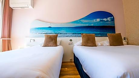 The hotel is located in the center of La Grande Motte, 10 minutes walk from the beach and 5 minutes walk from the marina. It is also only 492 feet from the Palais des Congrès and the Casino. Montpellier Méditerranée airport is a 20-minute drive from the hotel. The Hotel Europe was built with the launch of the resort in the 1970's. The preservation of its original architecture makes it charming and attractive. The 37 rooms are equipped with modern amenities such as flat-screen cable TV, mini-fridge, hospitality tray and air conditioning, as well as a hairdryer and free toiletries. Some rooms have a terrace or balcony. The property features free WI-Fi, an outdoor pool and a terrace. There is a supervised private parking lot, subject to reservation and availability and for an additional fee.