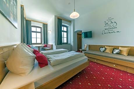 The 3 stars superior Hotel Gribelehof enjoys a unique location on the Schloßberg Mountain, featuring panoramic views of Lienz and the Bruck Castle. It offers a sauna, free parking and breakfast with specialties from East Tyrol. All rooms provide satellite TV, a bathroom and large beds. The Gribelehof serves regional, partly from the owners' farm, specialties and home-made specialties as well as good home cooking, either indoors in the restaurant, the Bauernstube rustic Alpine-style dining room dating from 1771, or on the terrace, which features panoramic views ofLienz. Guests can benefit of the Gribelehof’s garden, where a petting zoo with ponies, cats and a dog can be found. A large children’s playground is also located in the garden.