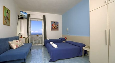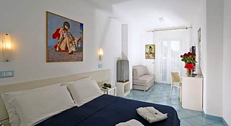 Overlooking the magnificent Citara Bay and the famed Poseidon Gardens, this charming hotel offers panoramic sea views and a welcoming atmosphere. Guests enjoy comfortable, well-equipped rooms, a thermal pool, a Finnish sauna, terraces, and a spacious garden. The air-conditioned restaurant with its sea-view terrace provides a delightful dining experience. A bus stop just 50 meters away offers easy access to Forio (800 meters) and other island attractions. Minimarkets, bars, restaurants, and a dance club are within easy reach. Daily rates for air conditioning and pets are €6. 00 each. The local tax is €2. 00 per adult, per day do pay on spot.