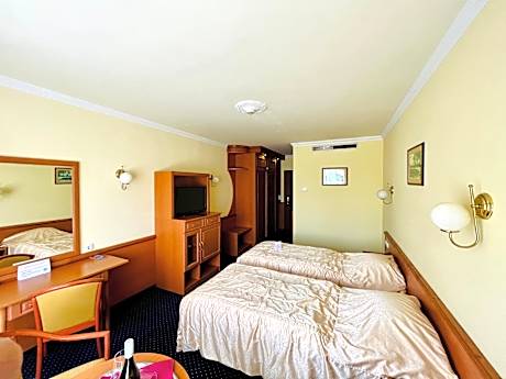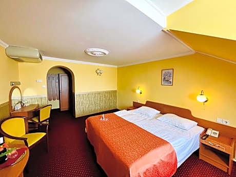 Located in Eger’s baroque city center, Hotel Korona provides a spa area. Wi-Fi access is free of charge. All of the air-conditioned rooms have a private bathroom with bathrobes and a hairdryer, a satellite TV and a sofa. Some rooms feature a hot tub and a fireplace. The Korona’s spa area consists of 2 swimming pools, a hot tub,a sauna and a solarium. Guests can also enjoy playing billiards or darts in the games room. Buffet breakfast and a la carte launch are sereved daily at the property's restaurant. Eger is about 75 mi from Budapest. Eger’s Basilica and the Main Train Station are only a 10-minute walk from Hotel Korona. License Number(s): SZ19000912