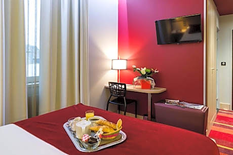 Hôtel Le Châteaubriant in Châteaubriant has 3-star accommodations with a shared lounge, a terrace and a bar. The air-conditioned rooms provide a city view and come with a desk and free WiFi. At the hotel, the rooms are equipped with a closet. All rooms in Hôtel Le Châteaubriant are equipped with a flat-screen TV and free toiletries. A buffet, continental or gluten-free breakfast is available at the property. Rennes–Saint-Jacques Airport is 38 miles from the property.