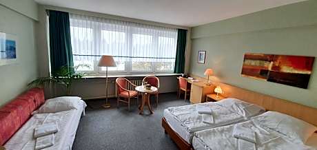A seating area with a flat-screen TV, a desk and a private bathroom are provided in this quadruple room. The unit offers 2 beds.