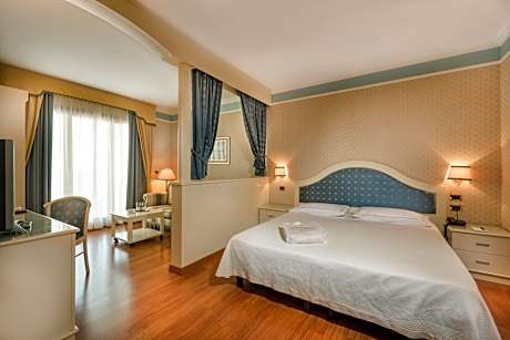 Only 1.2 mi from Lake Garda, Madrigale Panoramic Lifestyle & Soulful Hotel offers 2 swimming pools and lake views from its hilltop position in Marciaga. Cà degli Ulivi Golf Course is opposite the hotel. The 4-star superior hotel features air-conditioned rooms with satellite TV, a mini-bar and balcony. Most of them offer lake view and some have a spa bath. Madrigale Panoramic Lifestyle & Soulful Hotel. The poolside restaurant is open for lunch, while the main restaurant serves buffet breakfasts and dinners à la carte. You can relax in the first pool (heated in spring and autumn) with hydromassage features or in the large lake-view located in the garden. The hotel features a wellness center, , Turkish bath, experiential showers, whirlpool tub, ice waterfall and relax area with stunning lake view. It's paid and available upon request License Number(s): 023030-ALB-00013, IT