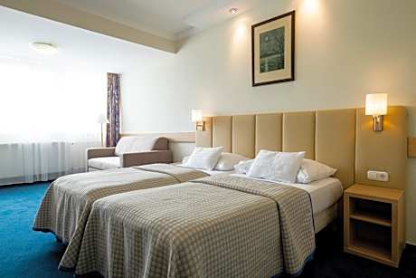 The child-friendly Hotel Marina Port in Balatonkenese is located next to the port and it offers a restaurant, a wellness area and air-conditioned rooms. Free WiFi is available. In the wellness department you can find an indoor pool, a hot tub with panoramic views of the lake, a Finnish sauna, and infrared sauna with salt therapy and with cardio and fitness machines. Children can spend their time in the kids’ pool. The restaurant serves traditional Hungarian dishes on à la carte basis. The closest shop is located 984 feet away. At the hotel's private beach you can find sunbeds and parasols, a tennis court, football field and a children's playground. The town of Székesfehérvár can be reached in 30 minutes by car. Budapest is 56 mi from the Marina Port Hotel.