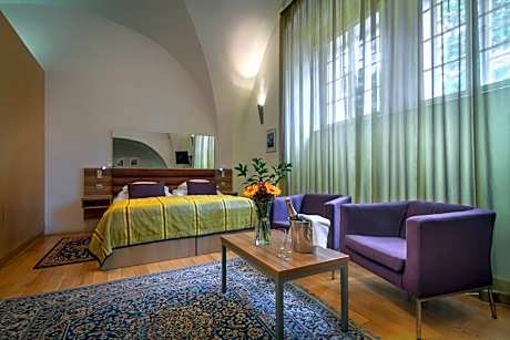The romantic Monastery Hotel in the peaceful garden of the Strahov Monastery offers superb views of Prague Castle, Lesser Town, the Old Town and the Vltava river. Prague Castle is just a few steps away and all the other historic sights of the Golden City are easily accessible on foot as well or by public transport. The modern interior design uniquely complements the ancient style of this building. All rooms feature a flat-screen satellite TV, free high-speed internet and tea and coffee making facilities. An internet point and a wireless internet zone is available in the lobby free of charge. Drinks can be purchased at the reception, which can also arrange sightseeing tours and excursions. Due to the historic monument protection there is no elevator in the building. All rooms are accessible only by stairs. The reception is only open from 07:00 to 19:00. When booking 9 or more people or 4 or more rooms for the same date, through one or more bookings, the hotel may apply different payment and cancelation policies. Please note that the same credit/debit card that was used for the prepayment of your booking needs to be presented upon arrival. If you are not the card holder or wish to cover the cost of the booking with a different credit card, please contact the hotel in advance. Contact details are stated in the book ng confirmation. It is possible to park your car in locked parking in hotel’s backyard (max. width 85 in, max. height 75 in). Reservation of parking is required.