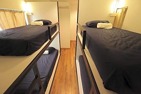 This 8-bed dormitory come air-conditioned. Each bed in this room comes with its own designated locker. Private bathroom is fitted with standing shower.