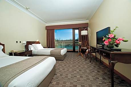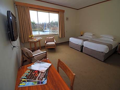 Set in a stylish German style building, Hotel Naguilan offers rooms with free Wi-Fi, and breakfast, 6234 feet from Valdivia Main Square. It features a big garden with a swimming pool and a river deck over Valdivia River. Rooms at Hotel Naguilan feature river views. All are decorated with wooden elements and some have separate living areas, plasma TVs, private balconies, and mini-bars. A continental breakfast including tea, coffee, milk, pastries, bread, toast and juices is served daily. Esencia restaurant offers Mediterranean dishes such as fish, shellfish, and meats, whereas Naviera Lobby Bar serves traditional Pisco Sour and several international cocktails. Guests can unwind on the decks overlooking the river, swim in the pool or enjoy themselves reading a book in the lounge. The 24-hour front desk can secure shuttles to Pichoy National Airport, which is 20 mi away. Hotel Naguilan is 0.6 mi from Torreon de Los Canelos.