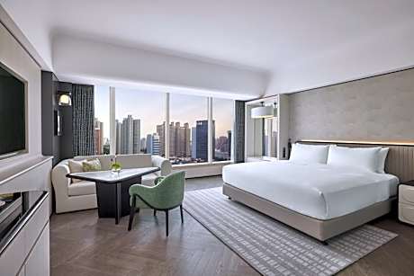 Hilton Shanghai City Center offers top-notch services and amenities, ensuring guests experience utmost comfort.Share your photos and respond to emails at your convenience, thanks to the free Wi-Fi internet access offered by hotel.Visitors can take advantage of complimentary parking directly at the hotel. Reception services such as concierge service, express check-in or check-out, luggage storage and safety deposit boxes are available to accommodate your requirements. Traveling with minimal baggage is achievable at Hilton Shanghai City Center, as the hotel's dry cleaning service and laundry service ensures your garments stay fresh.Room amenities like 24-hour room service, room service and daily housekeeping contribute to making a perfect selection for your stay. The hotel maintains a completely smoke-free zone, providing a breathable atmosphere.Smoking is limited to specified smoking zones. Each accommodation at Hilton Shanghai City Center is thoughtfully created and adorned to provide visitors with a comfortable, home-like atmosphere. In certain rooms, the hotel offers linen service, blackout curtains and air conditioning for guest convenience and satisfaction. At Hilton Shanghai City Center, uniquely crafted rooms provide various layout choices, featuring spaces equipped with separate living room and balcony or terrace.In select rooms, guests at the hotel can enjoy top-notch in-room entertainment with television and cable TV available for their convenience. Rest assured, in a few chosen rooms, you will find the convenience of a refrigerator, bottled water, a coffee or tea maker, instant tea and mini bar at your disposal. Maintain your cleanliness and comfort using a hair dryer, toiletries and bathrobes available in select guest restrooms. Immerse yourself in the executive lounge, where exceptional amenities and lavish surroundings await you. Embark on your holiday experience in the most ideal manner. Commence each morning of your visit with an on-site breakfast. Should you prefer not to venture out for a meal, the enticing culinary choices at hotel are always available for your satisfaction. Experience an unforgettable evening with your fellow travelers just a short distance away, at hotel's bar.Indulge in the numerous pursuits available at Hilton Shanghai City Center. Each day at hotel, immerse yourself in the invigorating waters of the pool, perfect for a rejuvenating plunge or a series of revitalizing laps. For individuals who don't want to skip their exercise routine, visiting the hotel fitness center ensures you maintain your vitality and wellness.