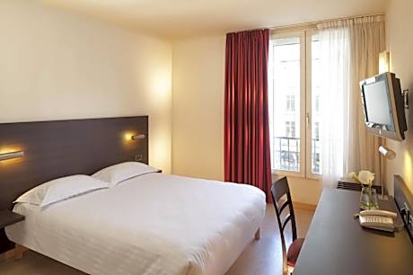 Hôtel Oceania Brest en zijn beroemde restaurant bevinden zich in het hart van Brest, vlakbij het congrescentrum Le Quartz en op 750 meter van het SNCF-treinstation. Gasten hebben gratis en onbeperkt toegang tot het fitnesscentrum op 250 meter afstand. De ruime en geluiddichte kamers van het Oceania Hotel zijn modern ingericht. Ze zijn volledig uitgerust met een parketvloer, gratis wifi, een flatscreen-tv met satellietzenders en een eigen badkamer. Het restaurant serveert dagelijks internationale gerechten en ontbijt. De receptie is 24 uur per dag geopend en alle kamers zijn bereikbaar met een lift. Ontdek de bezienswaardigheden van Brest, zoals de beroemde Pont de la Recouvrance en de Siam-winkelstraat met zijn talloze winkels en kabbelende fonteinen. Of geniet van activiteiten zoals watersporten op het strand van Moulin Blanc of een wandeling door de haven.