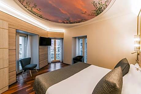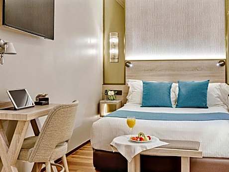 This smaller and quiet room has a 1.50-yard wide bed and views of the interior court yard. There is a desk, a mini-bar and a TV with 32 free channels. There is also free WiFi, a wardrobe and a luggage area.