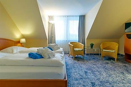 Family-run for several generations, this hotel in the Hellwege countryside offers modern rooms with Wi-Fi internet, a bowling alley and tennis court, and a spa area with an indoor pool. Rooms are located in several buildings across the estate of the Hotel & Restaurant Prüser´s Gasthof. Featuring a colorful décor, all include a satellite TV, mini-bar and sofa. Spa facilities include a sauna, hot tub and solarium. Children enjoy an on-site playground and bicycles can be rented for cycle tours in the surrounding countryside. The Prüser’s restaurant serves a buffet breakfast each morning. A variety of seasonal specialties is available here and can be enjoyed on the outside terrace in sunny weather. The surrounding Rotenburg woodlands are ideal for relaxing walks. The A1 motorway is 7 minutes away, and free parking is available on site.