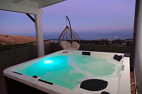 Guests will have a special experience as the quadruple room provides a pool with a view. This quadruple room includes a flat-screen TV with satellite channels, a private bathroom as well as a terrace with sea views. The unit offers 3 beds.